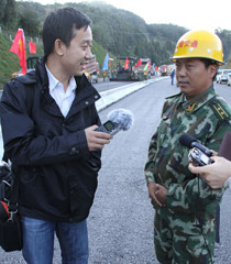 中央臺(tái)記者梁永春采訪武警交通部隊(duì)官兵