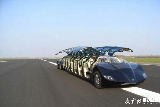 土豪的迪拜近期又做了一件讓人咋舌的事情,目前一款時速250公里的“超級巴士”(Superbus)已經在迪拜投入運行,這是目前世界上最快的公共汽車?梢詾23名乘客提供超舒適、超豪華運程。其身長15米,寬2.5米,高1.65米,配備了12扇鷗翼式車門。由于它的最高時速可達每小時255公里,迪拜至阿布扎比的主要高速公路附近專門為其新建一條專用車道,全程行駛僅僅需要30分鐘。