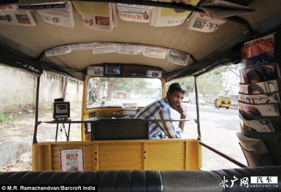 這位來自印度的名叫Annadurai的司機(jī)朋友便為他的嘟嘟車增添了不少科技玩意兒,不僅在后排為客人準(zhǔn)備了各式各樣的報(bào)紙雜志,更提供了免費(fèi)Wi-Fi服務(wù)、車用電視、平板電腦、各種款式的手機(jī)充電插頭等配備,為客人提供了相當(dāng)便利的乘車環(huán)境。