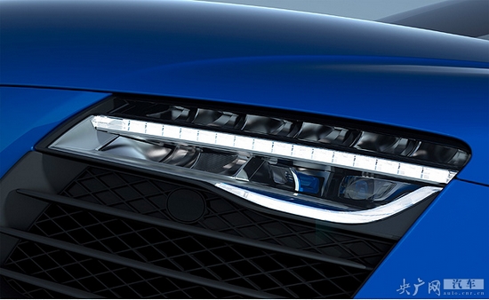 奧迪R8 LMX被形容為“世界上第一部配備激光遠光燈的量產車”,其激光頭燈內部帶有四個高能量的鐳射二極管,可以投射出色溫在5,500開爾文的白光,該光束會在60公里/小時的情況下開啟,為“車輛的可視性和安全性”帶來極大的加強。