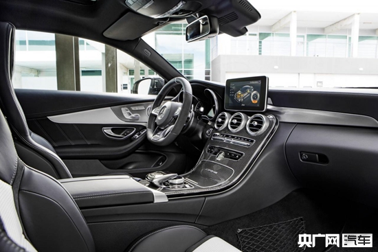 外觀方面,該車的前臉設(shè)計(jì)與四門版車型保持一致,前格柵采用了雙橫式設(shè)計(jì),簡單大氣。該車的前保險(xiǎn)杠造型也與四門版車型相同,不過采用了全黑色處理,更加突出了運(yùn)動感。此外,AMGC 63 Coupe前翼子板會鑲嵌有V8BITURBO的標(biāo)識,以表明其身份。車尾上,AMG C63 S Coupe的車尾加入了黑色擾流板,以及雙邊共四出的尾排。