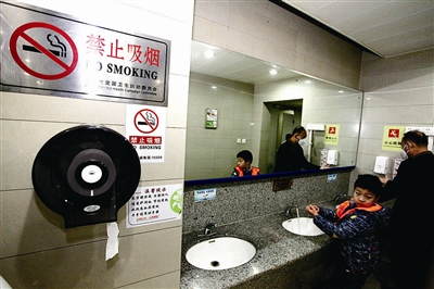 北青報記者從市醫(yī)管局獲悉,年內(nèi)北京22家市屬醫(yī)院將全部在衛(wèi)生間中配備廁紙和洗手液,改善衛(wèi)生間管理,提升整體服務(wù)水平。據(jù)了解,市醫(yī)管局從2015年年初就開始組織專家,研究制定市屬醫(yī)院衛(wèi)生間管理規(guī)范,目前,規(guī)范的初稿已經(jīng)完成,將進一步征求修訂意見,完善后將于近期下發(fā)!兑(guī)范》要求市屬22家三級醫(yī)院加大投入力度,加強保潔人員配置和保潔服務(wù)監(jiān)管,標配廁紙和洗手液。此外,各醫(yī)院還要進行人性化服務(wù)設(shè)施配備,比如增加掛鉤、物品放置臺、便盒擱置盒等方便如廁和留取檢驗樣品的便利設(shè)施,增加衛(wèi)生間無障礙特殊人群關(guān)懷設(shè)施等。
