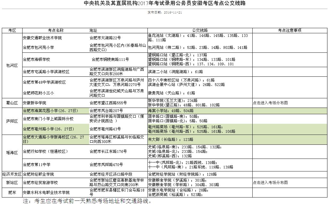 2017年國(guó)考安徽考區(qū)考點(diǎn)和公交線(xiàn)路公布 合肥共設(shè)16個(gè)考點(diǎn)