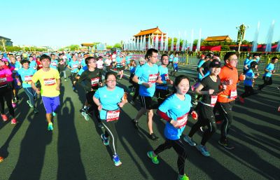 15日上午7時,2018北京國際長跑節(jié)、北京半程馬拉松在天安門廣場鳴槍起跑,大約18000人參加了比賽。