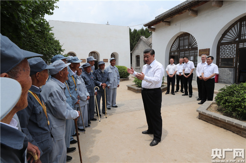 在晉綏軍區(qū)司令部舊址,總書記同當(dāng)年在晉綏邊區(qū)參加對敵斗爭的老戰(zhàn)士們親切交談。習(xí)近平說,呂梁我是第一次來,我心里一直向往著晉綏根據(jù)地。今天,全黨全國各族人民正在為實(shí)現(xiàn)“兩個一百年”奮斗目標(biāo)、實(shí)現(xiàn)中華民族偉大復(fù)興而奮斗。我們一定不能忘記為革命成功拋頭顱、灑熱血的前輩們,不能忘記為抵抗日本軍國主義侵略、為建立新中國、為社會主義革命和建設(shè)作出貢獻(xiàn)的老同志們。