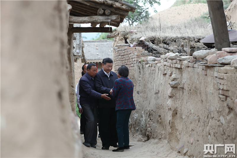深度貧困地區(qū)是脫貧攻堅(jiān)的“重中之重,堅(jiān)中之堅(jiān)”。如何確保深度貧困地區(qū)同全國一道邁進(jìn)小康社會,是習(xí)近平總書記心中深深的牽掛。6月21日下午,習(xí)近平來到山西省忻州市岢嵐縣趙家洼村看望貧困群眾。這里地處呂梁山區(qū),溝壑縱橫、土地貧瘠,生存條件十分惡劣,屬于典型的“一方水土養(yǎng)不好一方人”的地方。習(xí)近平沿著村里崎嶇不平的土路一連走進(jìn)三戶村民家中,察看他們的生活環(huán)境,了解家庭致貧原因和穩(wěn)定增收的可行性,同干部群眾一起共商脫貧攻堅(jiān)大計(jì)?倳浛隙水(dāng)?shù)赝ㄟ^易地搬遷改善村民生活條件的思路,要求配套扶貧措施要跟上,使貧困群眾不僅改善居住條件,還能穩(wěn)定增收。