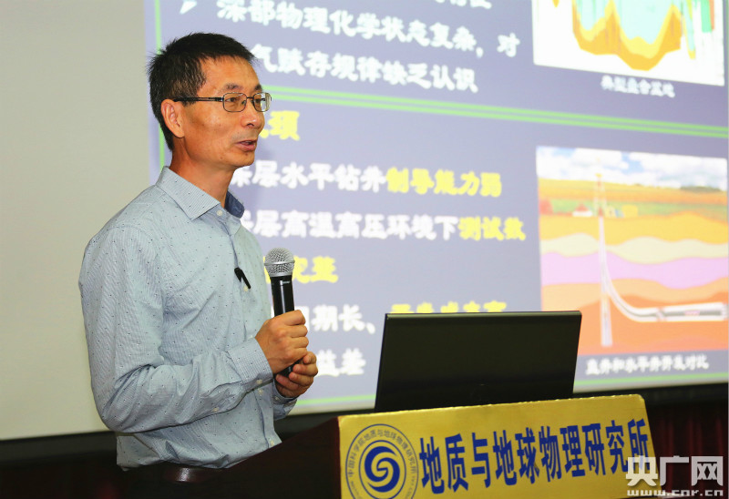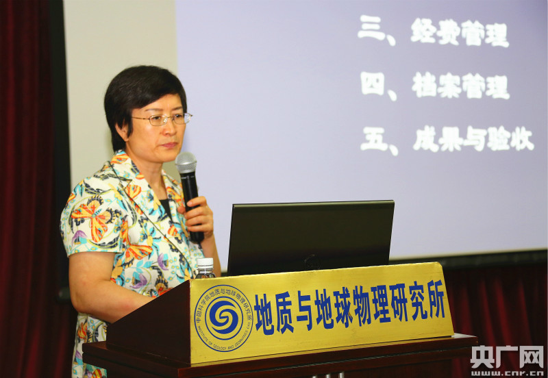 中科院地質(zhì)與地球物理研究所副所長底青云介紹“智能導(dǎo)鉆”先導(dǎo)專項(xiàng)的組織實(shí)施(記者黃光輝攝)