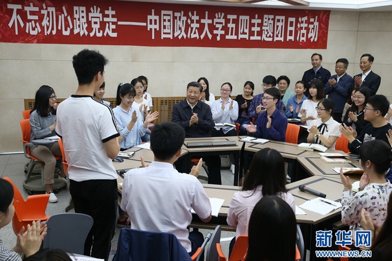 5月3日,中共中央總書記、國家主席、中央軍委主席習(xí)近平來到中國政法大學(xué)考察。這是習(xí)近平在學(xué)生活動中心參加民商經(jīng)濟(jì)法學(xué)院本科二年級2班團(tuán)支部開展的“不忘初心跟黨走”主題團(tuán)日活動。新華社記者 姚大偉 攝