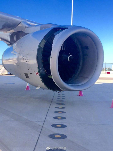 據(jù)了解,出現(xiàn)故障的是空客A330寬體客機(jī),從現(xiàn)場(chǎng)圖片可以看到,客機(jī)一側(cè)發(fā)動(dòng)機(jī)機(jī)匣出現(xiàn)了很大的裂縫。