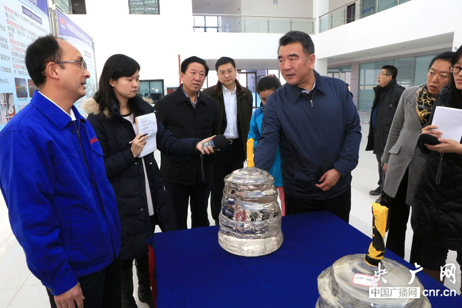 中央人民廣播電臺《行進中國 精彩故事》系列報道:絲路新雨。中央人民廣播電臺臺長王求采訪蘭石集團出城入園搬遷改造產(chǎn)業(yè)升級項目。(央廣網(wǎng)記者 杜虎 攝)