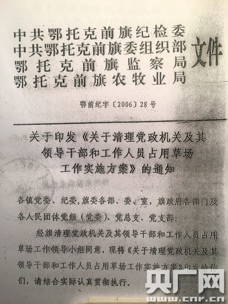 鄂托克前旗紀(jì)委等部門聯(lián)合發(fā)文(央廣網(wǎng)記者 白宇 攝)
