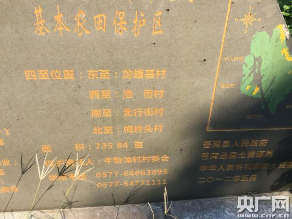 據(jù)村口不遠(yuǎn)處的一塊石碑上寫著“蒼南縣金鄉(xiāng)鎮(zhèn)牛臥龍村基本農(nóng)田保護(hù)區(qū)”,面積735.84畝,村民告訴記者,征地范圍恰好在其中。記者來(lái)到金鄉(xiāng)鎮(zhèn)土管所,查詢結(jié)果顯示被征用土地的是耕地和林地,但已經(jīng)辦理了土地性質(zhì)變更手續(xù),成為建設(shè)用地。