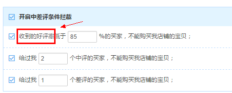劉小姐介紹,這種好評率攔截并非淘寶賣家平臺的自帶功能,而是通過需要通過安裝第三方插件來實現(xiàn)。它可以設(shè)置對好評率低于多少的買家進行攔截。