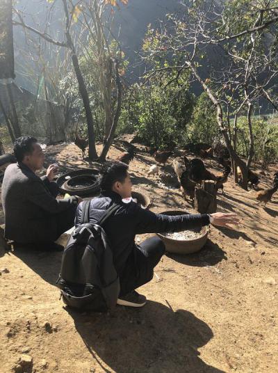 一籌莫展的時(shí)候,駐村扶貧工作隊(duì)隊(duì)長(zhǎng)桑娜妞找上門來,想聽聽他的計(jì)劃。楊文忠說:“過年后養(yǎng)土雞500只以上,豬三十頭,還有牛。但是現(xiàn)在蓋不起,沒有錢!