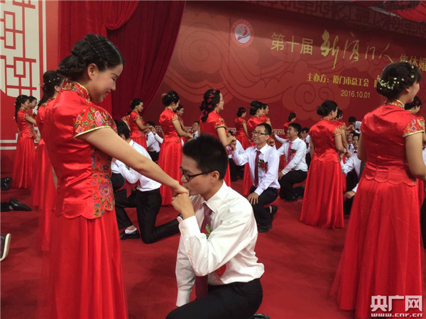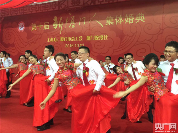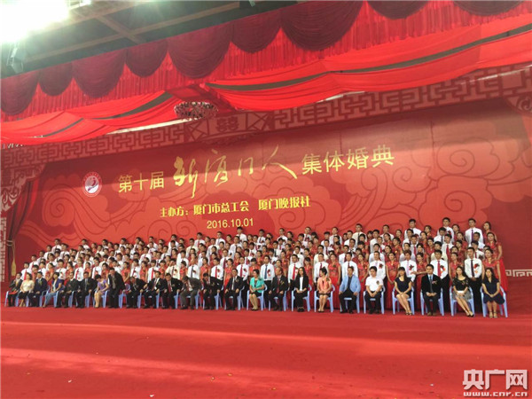 央廣網廈門10月1日消息(記者陳庚)據(jù)中國之聲《央廣新聞》報道,今天上午,第十屆“新廈門人”集體婚禮在廈門市工人體育館舉行,廈門市相關領導為百對新人證婚。