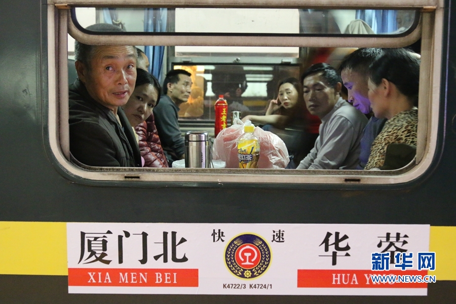 1月10日晚上6點29分,廈門北站開出首班外來務(wù)工人員返鄉(xiāng)專列。這是旅客在車上等候發(fā)車。新華網(wǎng)發(fā)(萬宇 攝)
