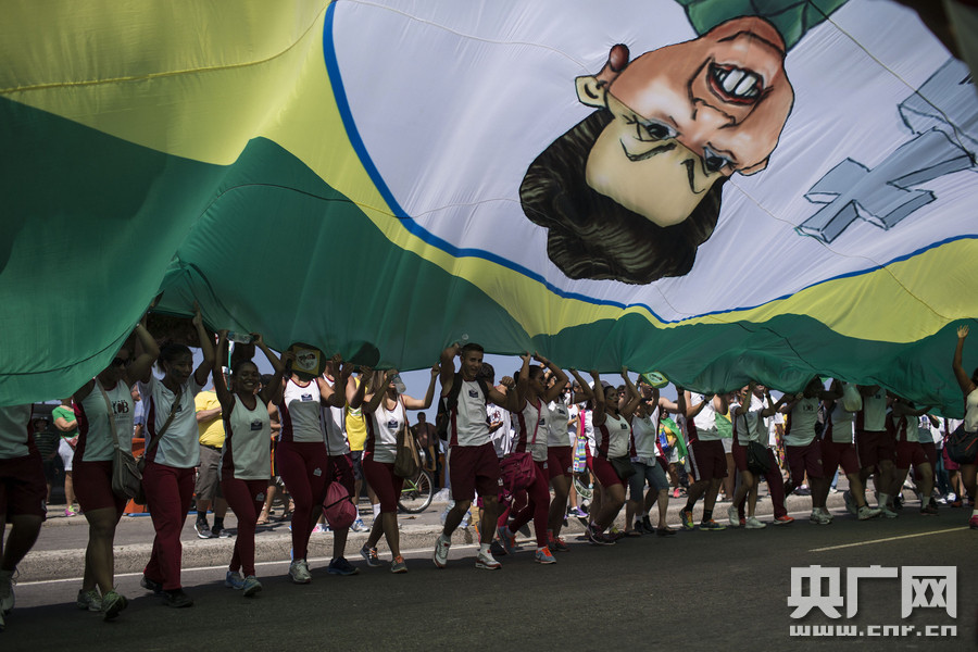 當?shù)貢r間2015年4月12日,巴西多地民眾舉行大規(guī)模反政府示威活動,要求彈劾總統(tǒng)羅塞夫,抗議巴西石油公司腐敗。