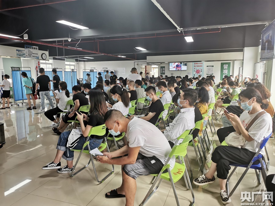 廣州市海珠區(qū)最大的新冠疫苗臨時接種點留觀區(qū)(央廣網(wǎng)記者 夏燕 攝)