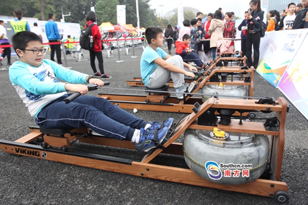 陸上劃艇器吸引了眾多小朋友前來體驗