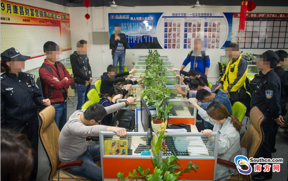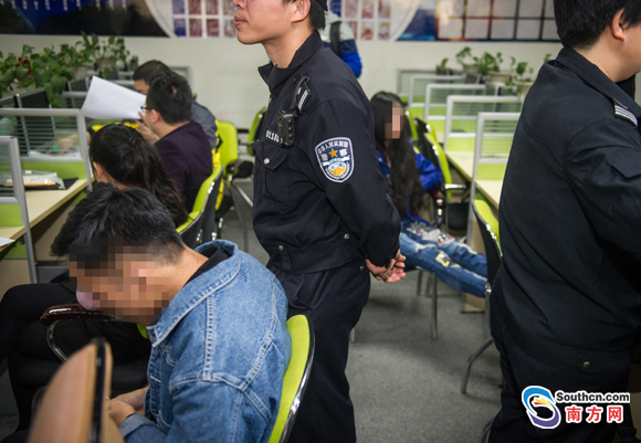 收網(wǎng)行動,警方破獲一網(wǎng)絡(luò)詐騙案,圖為抓捕行動現(xiàn)場。