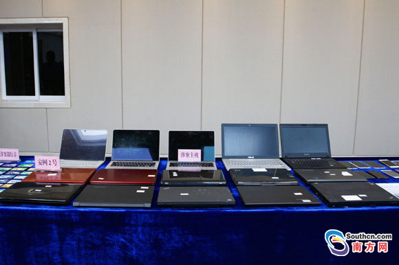 在新聞發(fā)布會現(xiàn)場,警方展示繳獲物品。