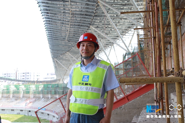中建鋼構(gòu)有限公司肇慶體育中心升級(jí)改造工程項(xiàng)目項(xiàng)目經(jīng)理薛飛飛(左5)是中建鋼構(gòu)最早一批80后項(xiàng)目經(jīng)理。他介紹。項(xiàng)目升級(jí)改造工程自2016年3月開工,預(yù)計(jì)將于2018年初提前完工。體育中心升級(jí)改造后,將成為集綠色節(jié)能、智能辦公、健身、娛樂、休閑和展示于一體的大型多功能綜合性活動(dòng)場所。新華網(wǎng) 伍嘉煒攝