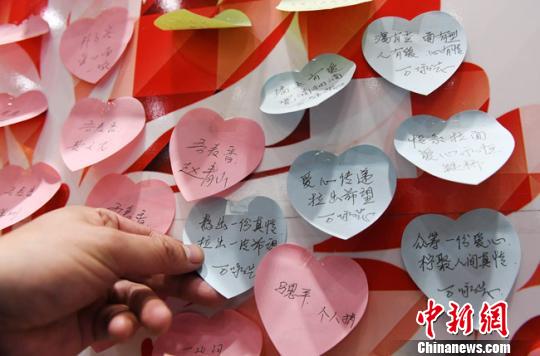 蘭州本地5家牛肉面連鎖品牌加入“墻上有愛(ài),人人公益”愛(ài)心牛肉面活動(dòng)。用餐的人提前購(gòu)買牛肉面,將購(gòu)得的小票貼在墻上并寫上祝福語(yǔ),任何一位需要就餐卻遇到困難的食客,都可以將墻上的小票撕下來(lái)交到收銀臺(tái),免費(fèi)享用牛肉面。圖為活動(dòng)園地!钇G敏 攝