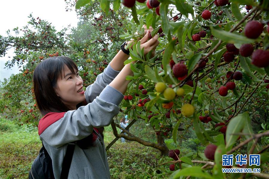 6月3日,一名游客在楊梅節(jié)上采摘楊梅。當(dāng)日,貴州省黔東南苗族侗族自治州榕江縣高文苗寨舉辦楊梅節(jié),吸引眾多游客參加“楊梅大王”評選、吃楊梅比賽、吹蘆笙、跳蘆笙舞等趣味活動(dòng)。新華社發(fā)(劉進(jìn)銀 攝) -