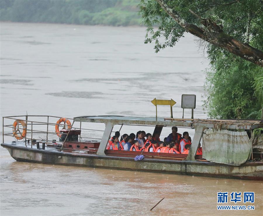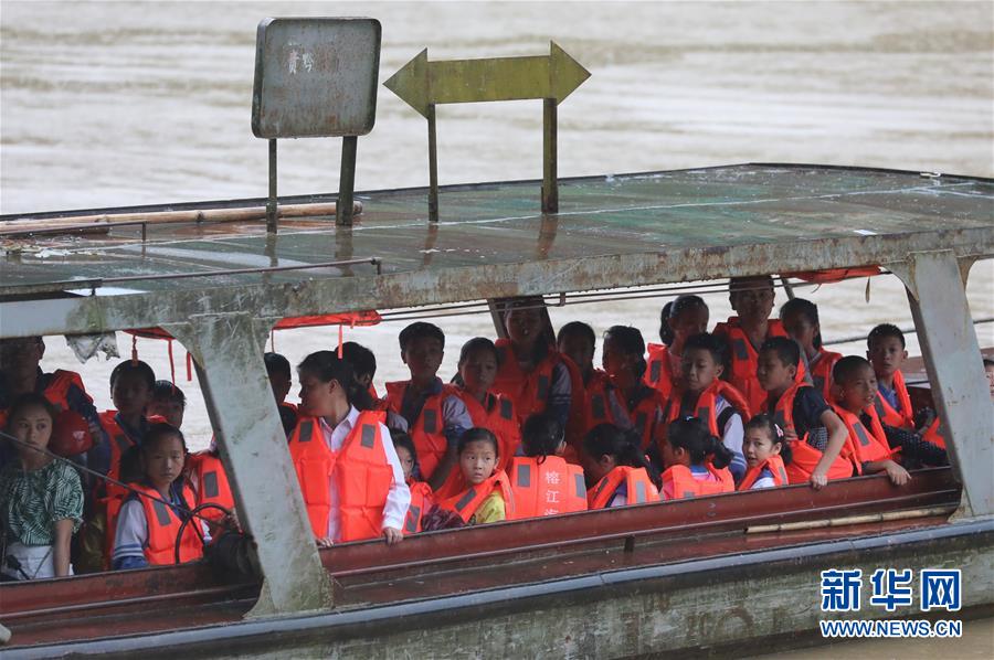 6月22日,在老師的護(hù)送下,八吉小學(xué)學(xué)生乘渡船過江。近日,貴州省榕江縣進(jìn)入汛期。連日降雨過后,為保障學(xué)生安全,該縣位于都柳江畔的八吉小學(xué)22日趕在上游洪峰來臨前緊急下課。240余名學(xué)生在全校教職員工保護(hù)下登船渡江,安全回家。八吉小學(xué)目前在校學(xué)生399名,其中240多人家住都柳江對(duì)岸。建校27年來,每至汛期,學(xué)校都會(huì)安排教師值班,護(hù)送學(xué)生過江。新華社記者歐東衢攝 -