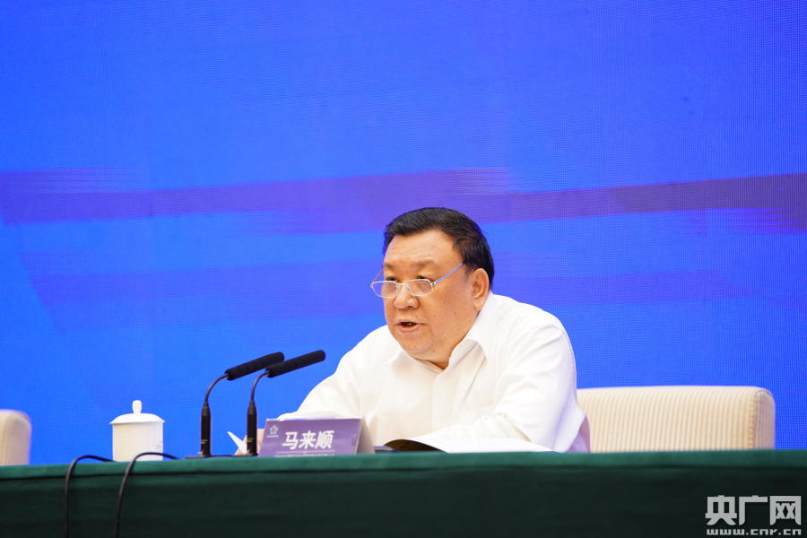 新當(dāng)選的協(xié)會主席馬來順作工作規(guī)劃報告(央廣網(wǎng)發(fā) 許付磊 攝)