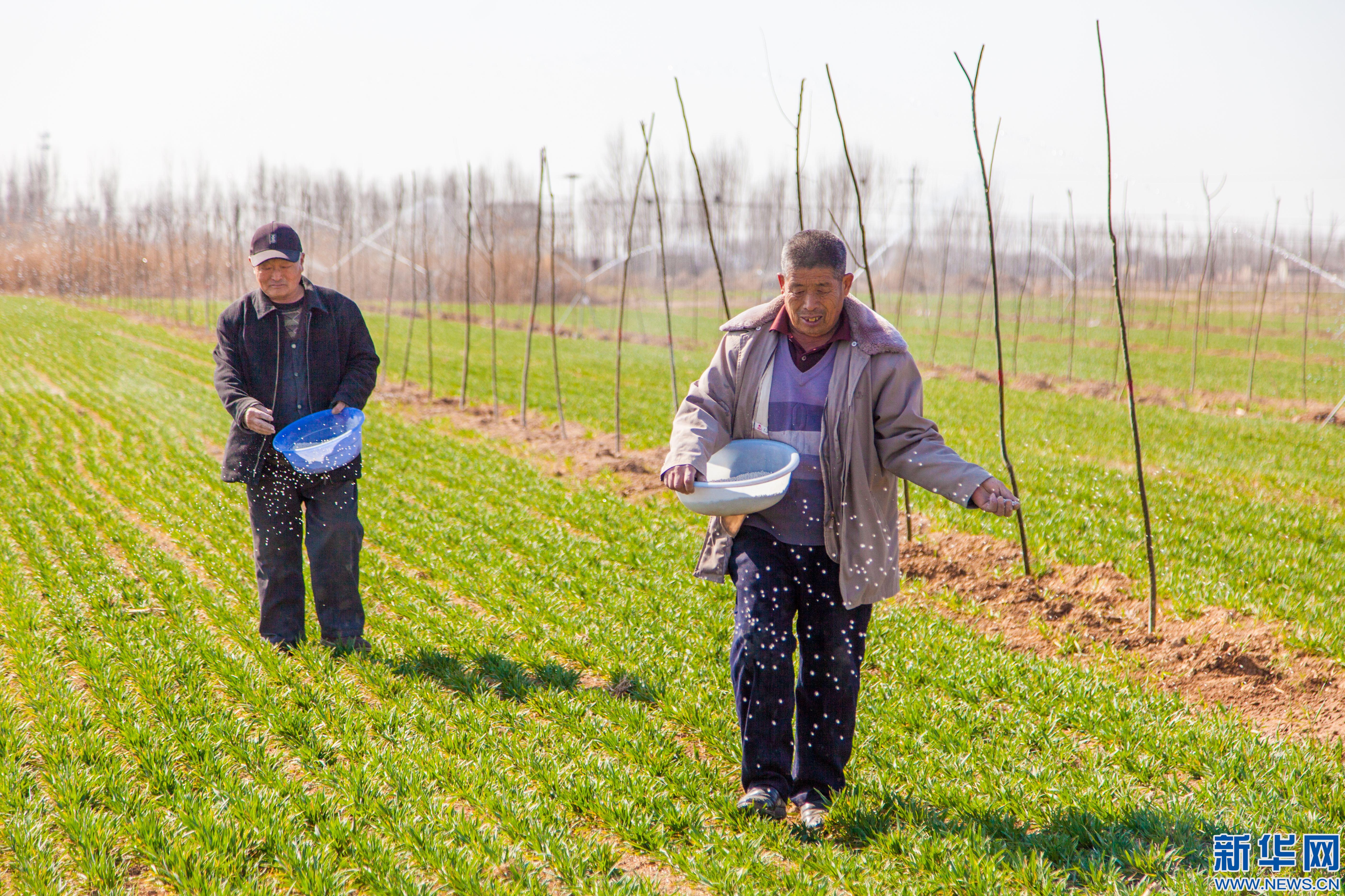 • 3月12日,河北省武邑縣四里屯村農(nóng)民在麥田為小麥?zhǔn)┓。新華社記者朱旭東 攝