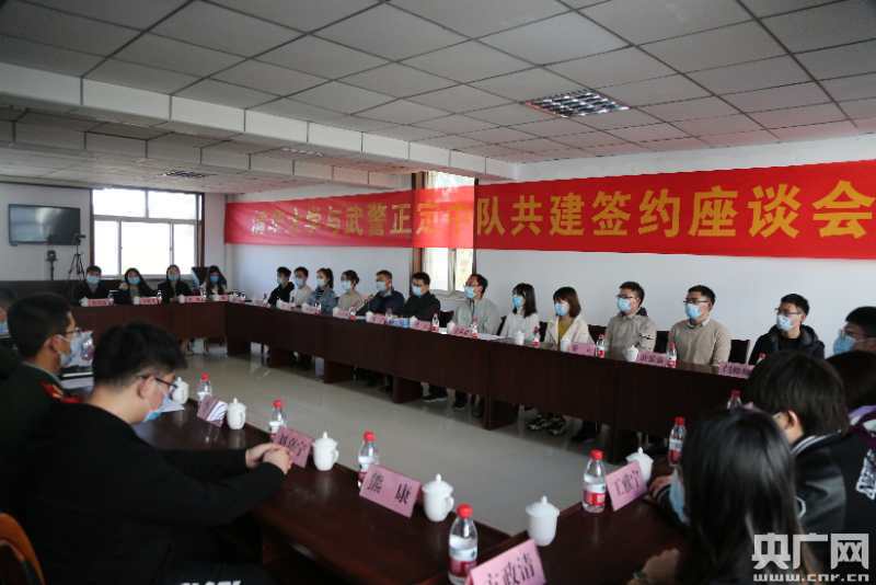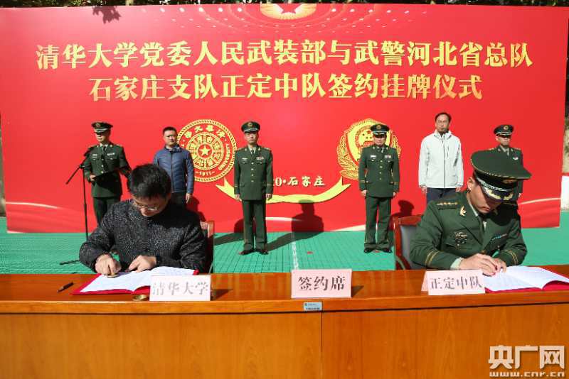 清華大學(xué)黨委武裝部和正定中隊(duì)簽約現(xiàn)場(chǎng)(央廣網(wǎng)發(fā) 武警正定中隊(duì)供圖)