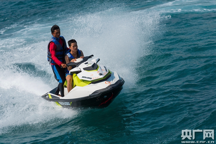 游客體驗(yàn)水上項(xiàng)目(央廣網(wǎng)發(fā) 通訊員童國(guó)強(qiáng) 攝)