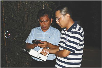 、勐(lián)合執(zhí)法組夜巡工作中對空氣質(zhì)量進(jìn)行相關(guān)檢測。