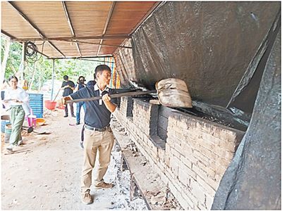 、苈(lián)合執(zhí)法組發(fā)現(xiàn)位于瓊海與定安兩市縣的交界處“藏匿”的用藍(lán)色鐵皮搭建起的土法煙熏檳榔加工點(diǎn)。