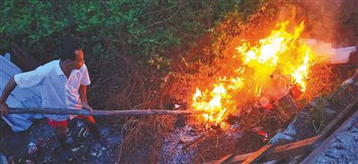 ⑧聯(lián)合執(zhí)法組在萬寧市發(fā)現(xiàn)居民露天焚燒垃圾。