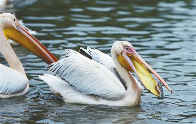 1月17日,白鵜鶘在捕食小魚(yú)。