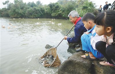 1月17日中午,?谑旋埲A區(qū)龍泉鎮(zhèn)美仁坡村委會(huì)購(gòu)買(mǎi)500斤羅非魚(yú)苗,投放到定文村濕地魚(yú)塘,喂養(yǎng)12天前光臨此地的7只白鵜鶘。村里8支農(nóng)民護(hù)鳥(niǎo)隊(duì)盡職盡責(zé)24小時(shí)看護(hù),希望白鵜鶘在此地繁衍生息。