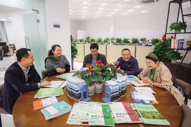 1月22日下午,海南省首個(gè)博士服務(wù)工作站在文昌市揭牌成立。圖為工作站的博士在謀劃工作安排。