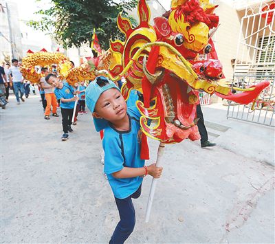 二月十九日,儋州市中和鎮(zhèn)的小朋友參與舞龍鬧元宵。 海南日報記者 陳元才 通訊員 朱鼎甲 攝