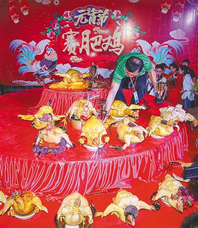賽肥雞由明代祭祀城隍爺?shù)募蓝Y演變而來。在瓊海市博鰲鎮(zhèn)樂城村,每年正月十五、十六,家家戶戶將圓鼓鼓的肥雞擺放在家門口。在百姓欣賞品評的同時,村里德高望重的鄉(xiāng)賢則會挨家挨戶為參賽的肥雞評分,推選出一年一度的奪魁肥雞。誰家的雞最肥,說明誰家最會養(yǎng)雞,同時也是最勤勞的象征。(丁平)