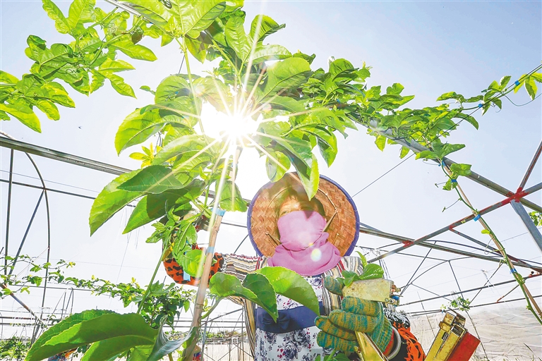 復工忙 百果香, 近日,在昌江黎族自治縣烏烈鎮(zhèn)和豐扶貧產(chǎn)業(yè)園,貧困戶工人們在修剪百香果架子上的蔓藤,目前該園組織周邊村莊10多名貧困戶投入生產(chǎn)、有序復工。據(jù)介紹,昌江積極落實“抗疫情、保增收、防返貧”措施,一手抓疫情防控、一手抓脫貧攻堅,持續(xù)鞏固脫貧成果,切實打好打贏脫貧攻堅收官之戰(zhàn),確保如期完成目標任務。