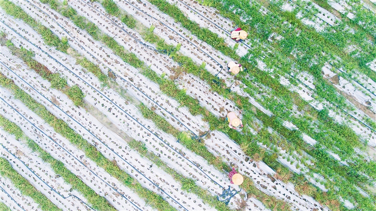 今秋,瓊海市采取“公司+農(nóng)戶+合作社”的模式,利用龍壽洋萬畝田野公園臨時閑置田地,試種110畝耐受旱澇的韭菜。