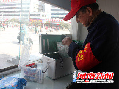 12日這天,趙顯達老人6點鐘起床,早飯都顧不上吃便急匆匆地乘坐1個小時的公交車趕至火車站。打掃衛(wèi)生,整理醫(yī)藥包等物品,為乘客指路,倒水,收集乘車信息……一上午,趙顯達不厭其煩地為一個又一個旅客解答問題,連喝口水的時間都沒有,但他卻樂此不疲。他說,能夠在春運期間為旅客服務很自豪,做的都是瑣碎的小事,但希望旅客因為他的服務旅程變得更加舒心。(馬義恒)