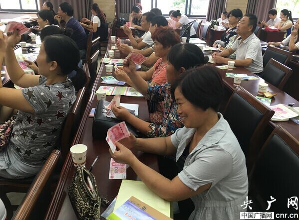 參訓(xùn)群眾紛紛自行拿起新、舊版百元紙幣進(jìn)行比較