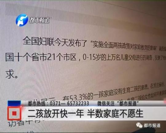 根據(jù)全國婦聯(lián)的調(diào)查報(bào)告,全國50%以上的一孩家庭沒有生育二孩的意愿,而在發(fā)達(dá)省份、城市地區(qū)、這個(gè)比例達(dá)到了60%.其實(shí)我們走訪鄭州街頭,生育二孩的積極性,真的沒有那么高漲。
