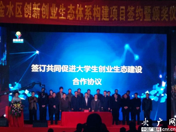 央廣網河南分網12月24日消息 (本網特別報道組)12月22日上午,金水區(qū)創(chuàng)新創(chuàng)業(yè)生態(tài)體系構建項目簽約暨頒獎儀式在儉學街金水區(qū)大學生創(chuàng)業(yè)園大禮堂隆重舉行,這是繼2015年金水區(qū)舉行的第三次創(chuàng)新創(chuàng)業(yè)大賽。