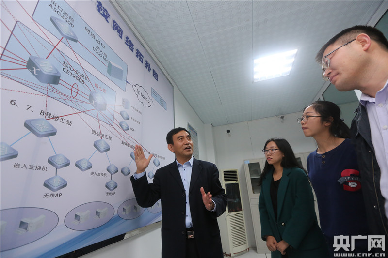 連續(xù)三次援疆、十九大代表、哈密職業(yè)技術學院副院長劉志懷,與同事一起商討智慧校園建設 哈密市教育局供圖