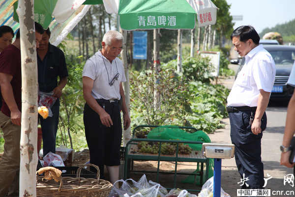 央廣網(wǎng)河南分網(wǎng)消息 2016年8月29日上午,郟縣聯(lián)社黨委委員、副主任辛勝利帶領(lǐng)機關(guān)黨支部部分黨員干部,相關(guān)科室負(fù)責(zé)人,金燕家網(wǎng)絡(luò)商城負(fù)責(zé)人前往郟神路北段盛源葡萄園看望慰問受傷園主親屬,并將他們剛采摘一筐葡萄采購一空。