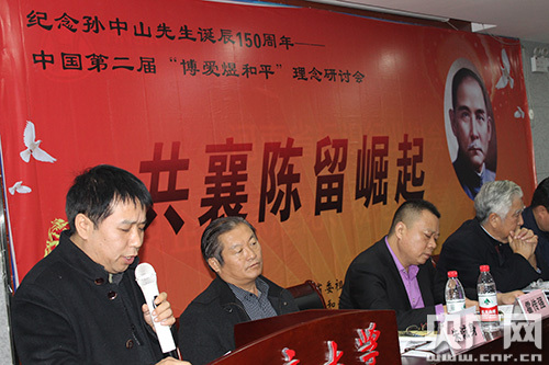 央廣網(wǎng)河南分網(wǎng)消息 11月12日是一代偉人孫中山先生誕辰150周年紀(jì)念日。在鄭東新區(qū)河南商會(huì)大廈17樓會(huì)議室,紀(jì)念孫中山誕辰150周年——中國(guó)第二屆“博愛(ài)煜和平”理念研討會(huì)“共襄陳留崛起”如期舉辦,圓滿成功。